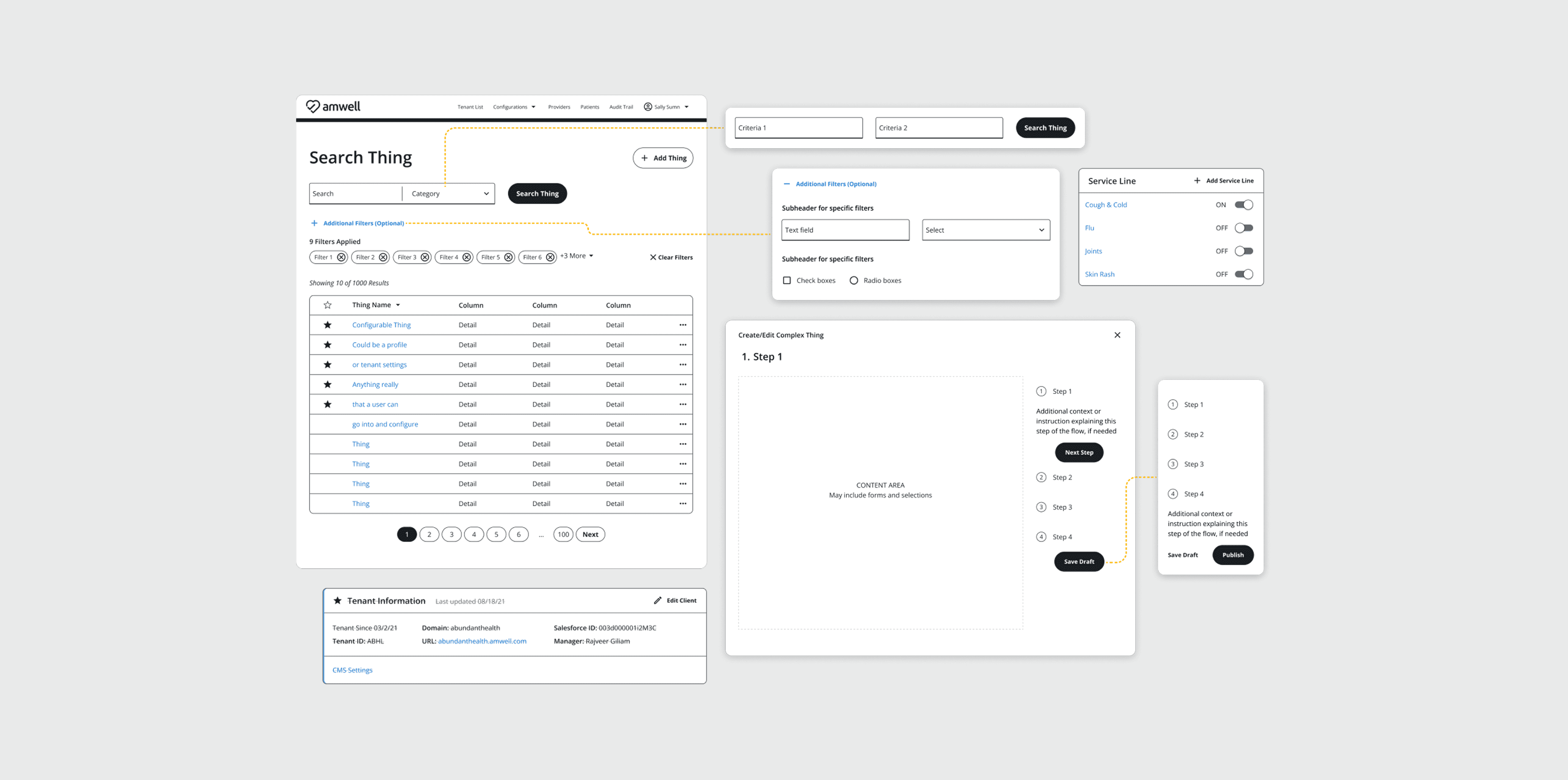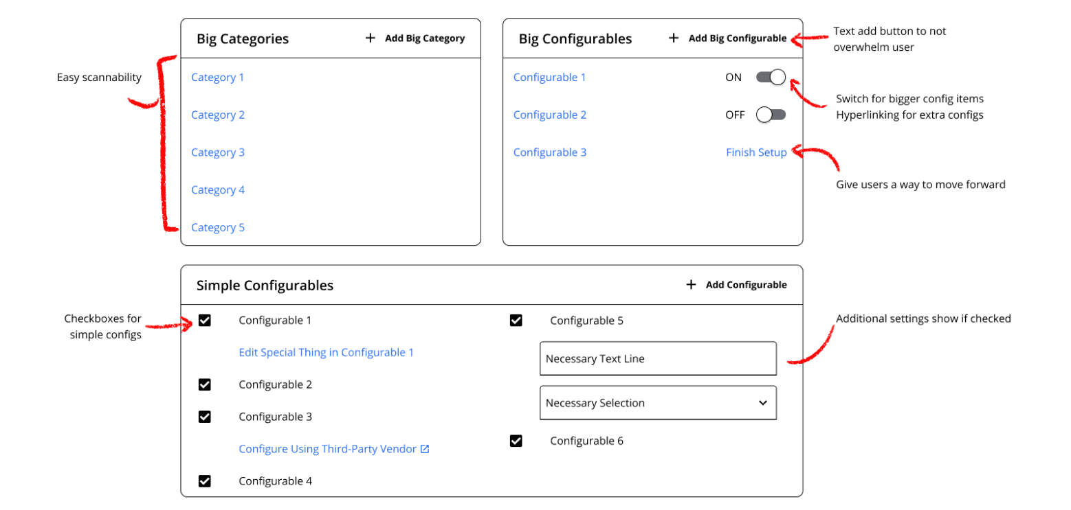 Problem: The company offered B2B SaaS and wanted to create a streamlined but modular product that could be customized for each of their clients. Configurations were being done through a third-party CMS, which the company was now growing out of as the product and microservice offerings became more complex.